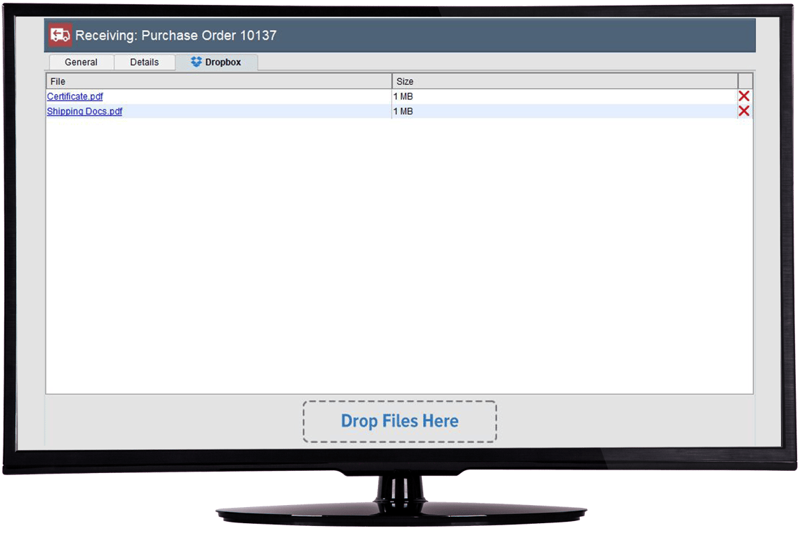 Utilise the integration that Fishbowl has with Dropbox or attached documents from your own file storage to attach document records to any transaction or record within Fishbowl. It could be anything from a customers approved credit application to a Certificate of Analysis against received stock.