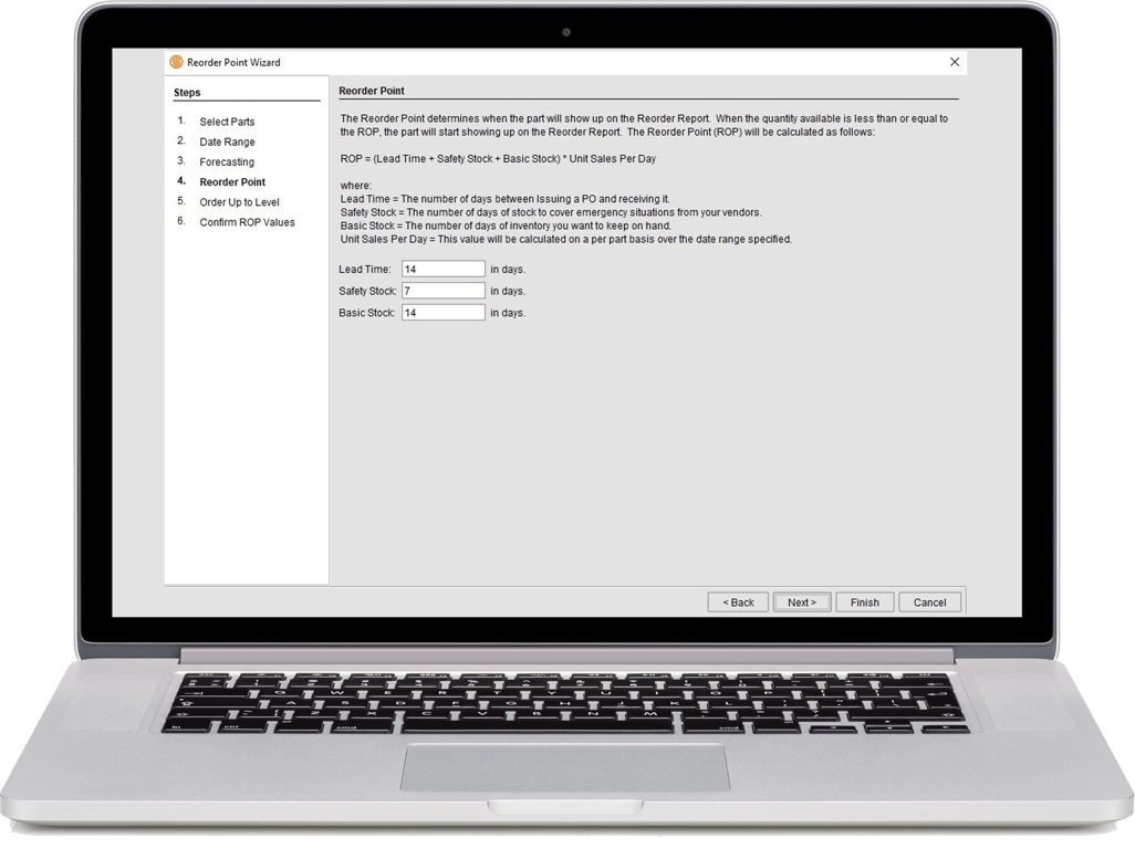 Reorder points can be set manually against an item, Import from a spreadsheet or use Fishbowl’s Reorder Point calculator to maintain reorder points over time based on actual sales and usage history taking each supplier lead time and order interval into account.