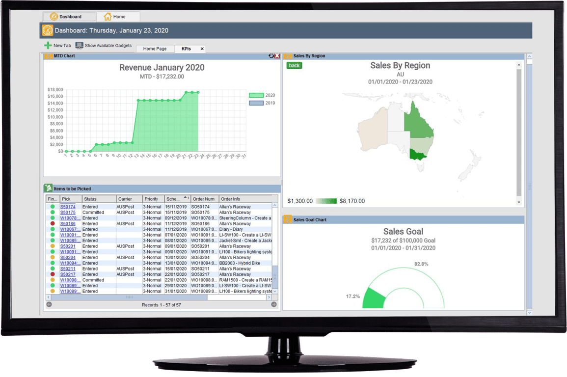 Each User can create their own Dashboard that they see when logging in. This can show reports, graphs or a list of transactions that need actioning.