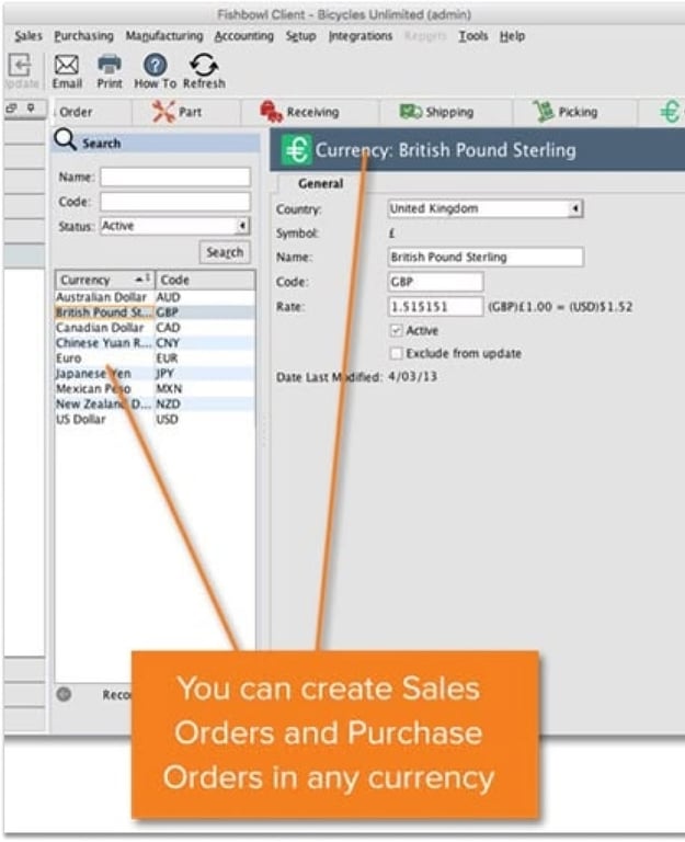 If your business purchases items in multiple currencies, you can now convert all of them to the same currency for accurate accounting. You can create Sales Orders and Purchase Orders in any currency and Fishbowl will keep track of the transactions in both currencies. In addition, Fishbowl’s integration with Xero, QuickBooks Online, and Reckon Accounts will help you keep your accounting records accurate.